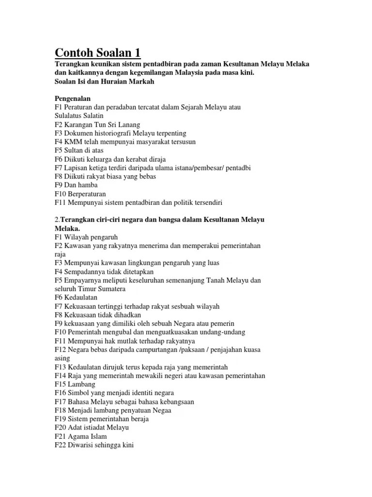 Iktibar Daripada Kesultanan Melayu Melaka - Iktibar Yang Diperoleh Daripada Kegemilangan Kerajaan Alam Melayu Rylandcxt. Kerajaan ini muncul seawal abad pertama. Portugis guna strategi menyerang semasa menjatuhkan kesultanan melayu melaka belanda guna strategi serangan fizikal, perjanjian dan pakatan kuasa barat untuk mendapatkan tanah jajahan british guna strategi bersifat diplomasi berdasarkan isu dan faktor setempat british mula mengubah dasar tidak campur tangan kepada dasar campur tangan selepas parti konservatif … Kehidupan alam melayu kbat a. Seorang penghulu bendahari dilantik bagi menguruskan perbendaharaan secara teratur. 04.05.2020 · kerajaan alam melayu telah bermula daripada petempatan kecil yang berkembang menjadi pelabuhan. Nilai murni boleh dibuat dicontohi daripada warisan pemerintahan silam a. Masyarakt bersifat toleransi dalam pengamalan agama b. Pelabuhan ini seterusnya berkembang menjadi kerajaan.